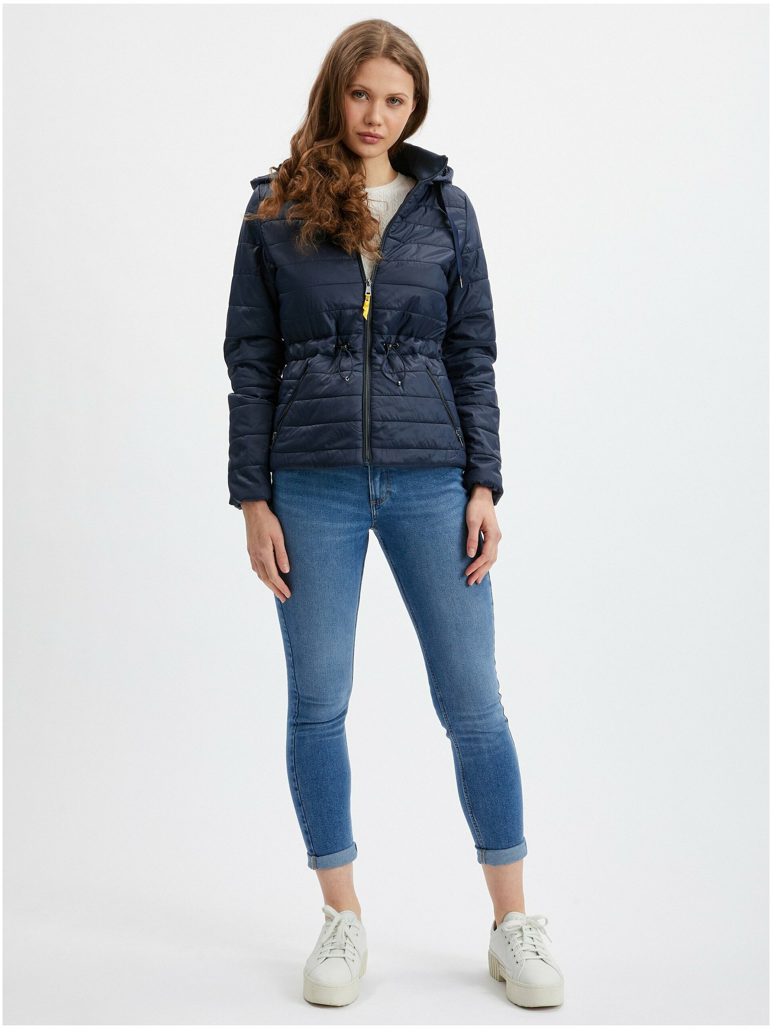 Jachetă tip cămașă în carouri alb-albastru cu cordon de damă ORSAY