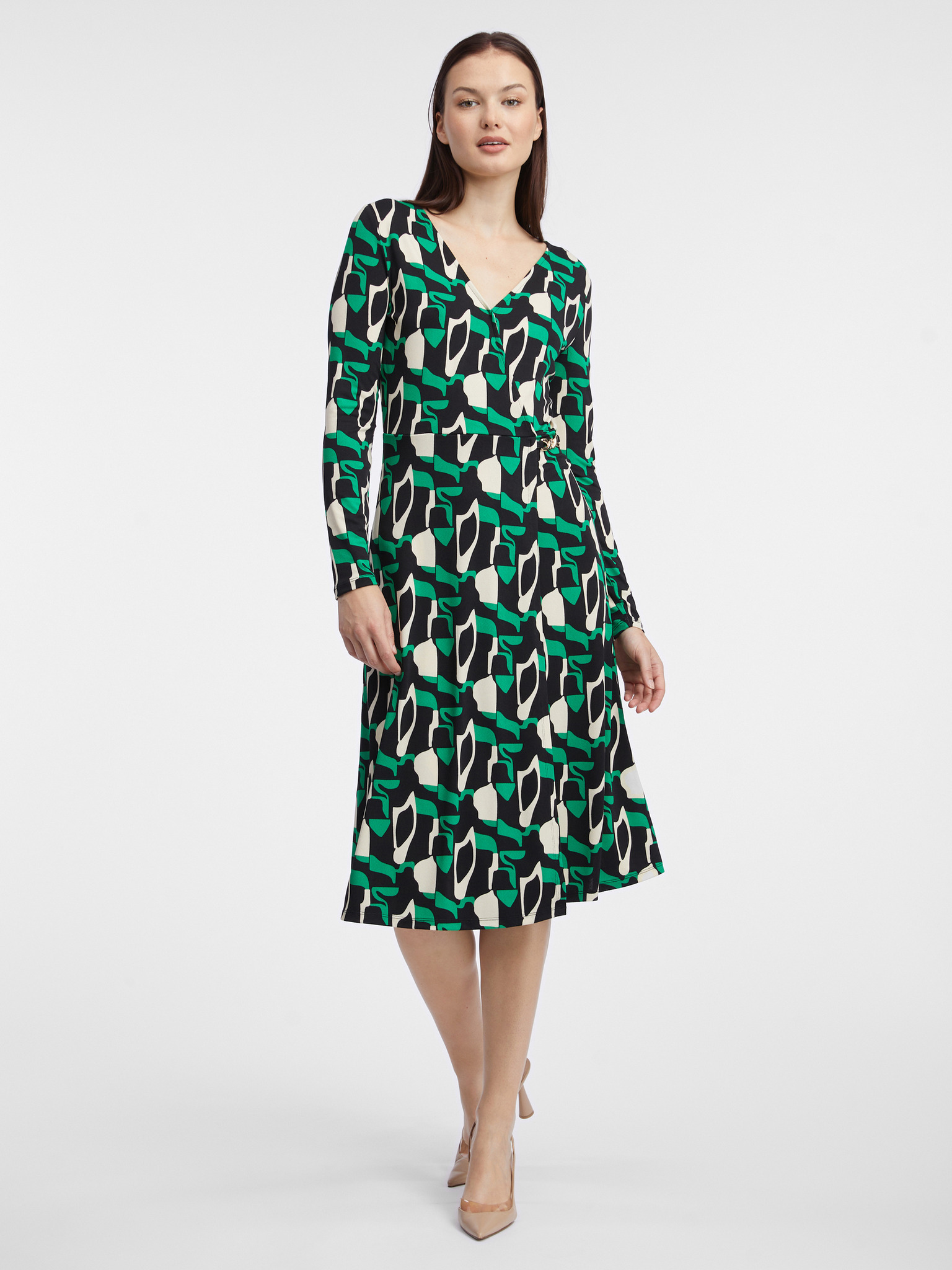 Rochie midi de damă cu model verde închis ORSAY