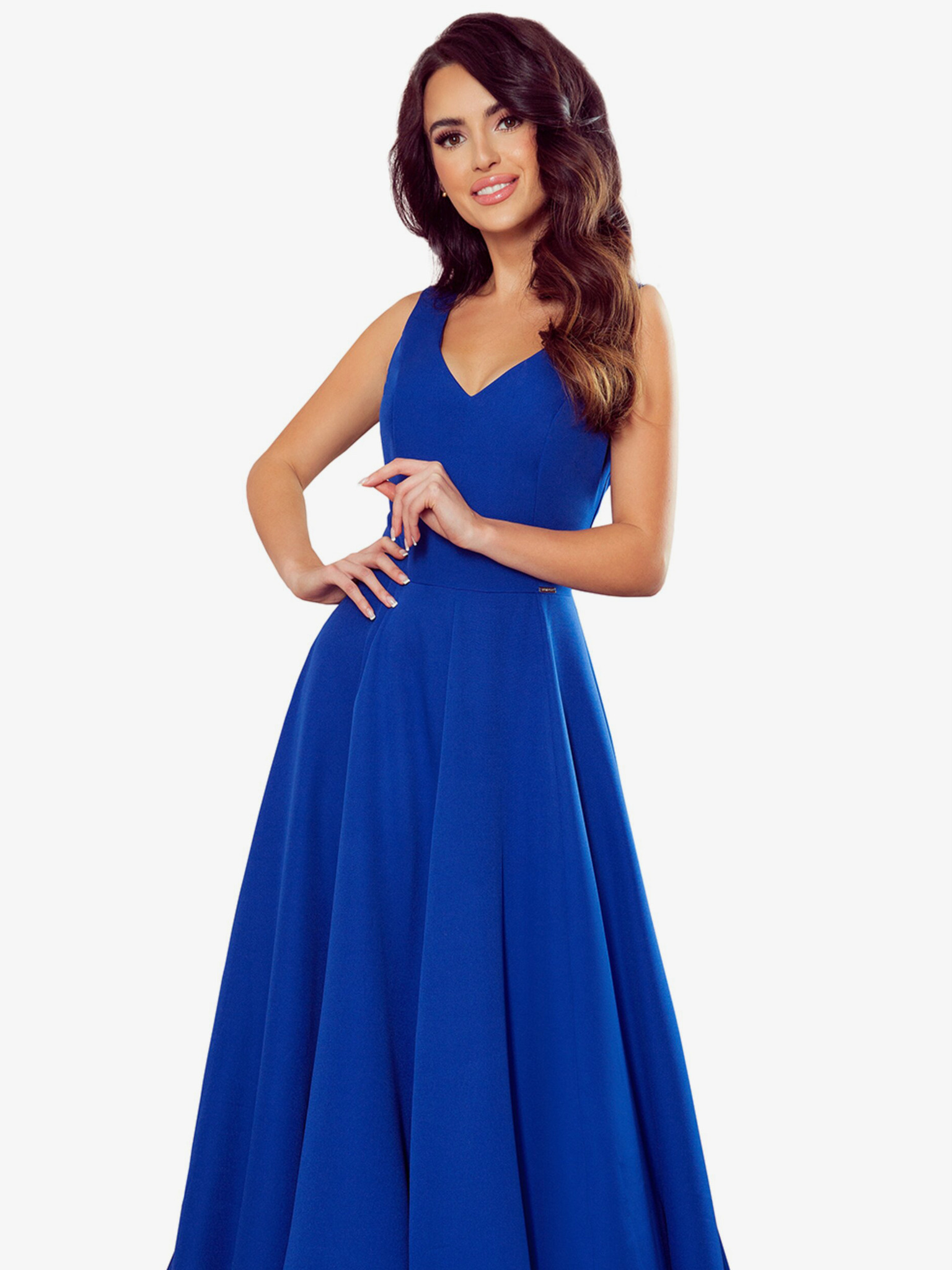 Rochie lungă sclipitoare cu decolteu - albastru Numoco CRYSTAL